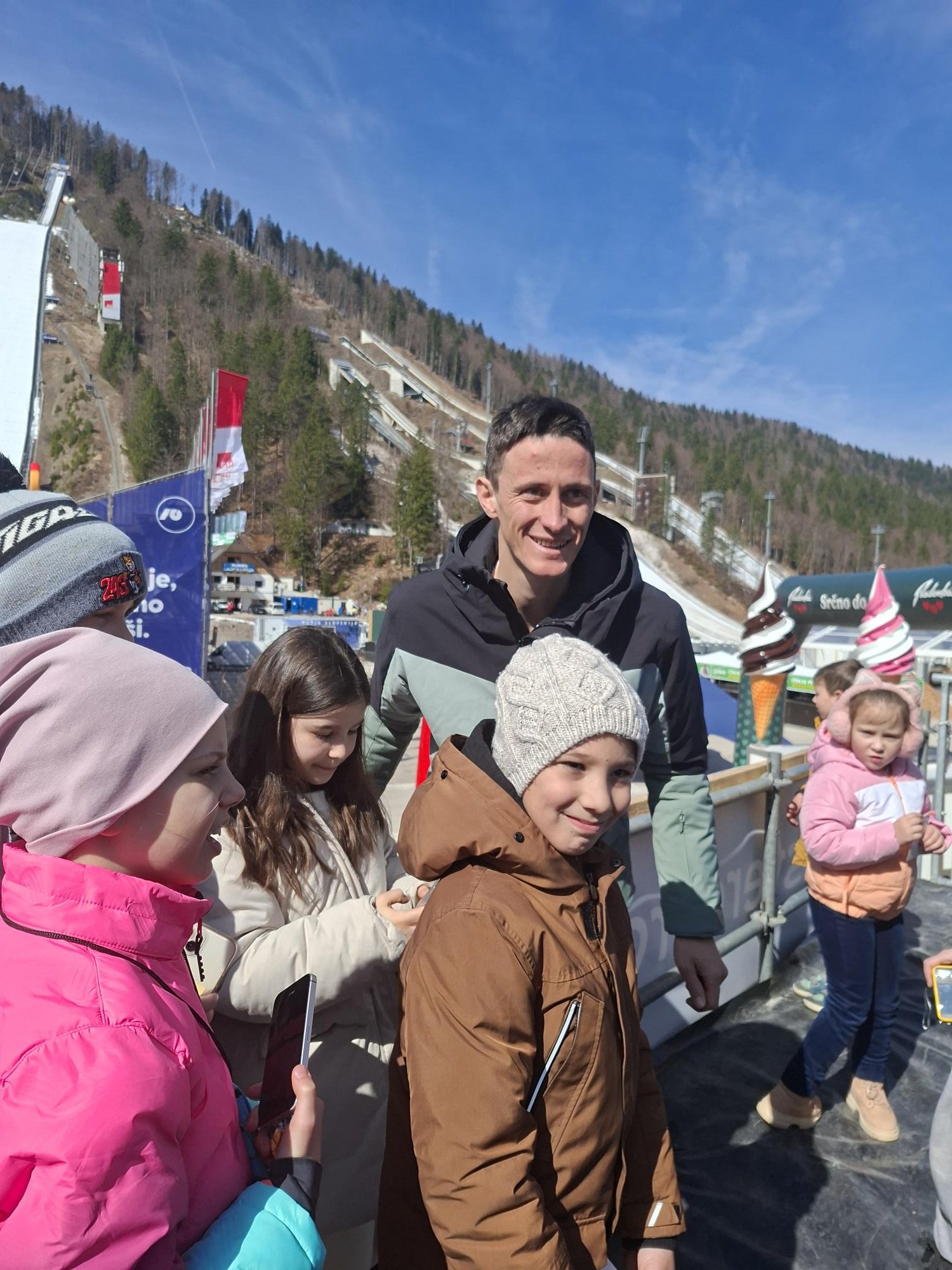 Poseben trenutek je bilo druženje s skakalci in zbiranje avtogramov. Učenci so z velikim navdušenjem spoznavali športnike, ki so si kljub napornemu urniku vzeli čas za prijazno besedo, podpis in skupno fotografijo.