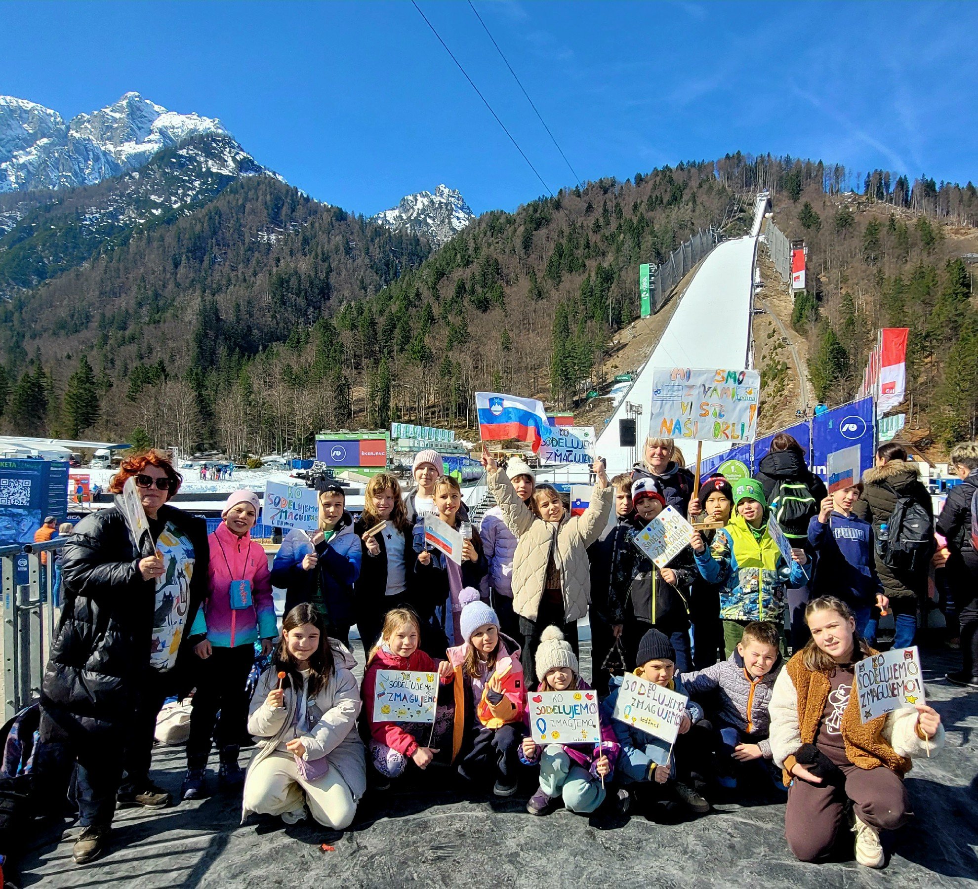 Učenci 3. a razreda iz matične šole in učenci bolnišnične šole na URI Soča so 25. marca 2026 doživeli prav poseben dan, poln navdušenja, smeha in nepozabnih trenutkov. Odpravili so se na izlet v Planica, kjer so si v živo ogledali trening smučarskih skokov ter začutili pravo športno vzdušje.