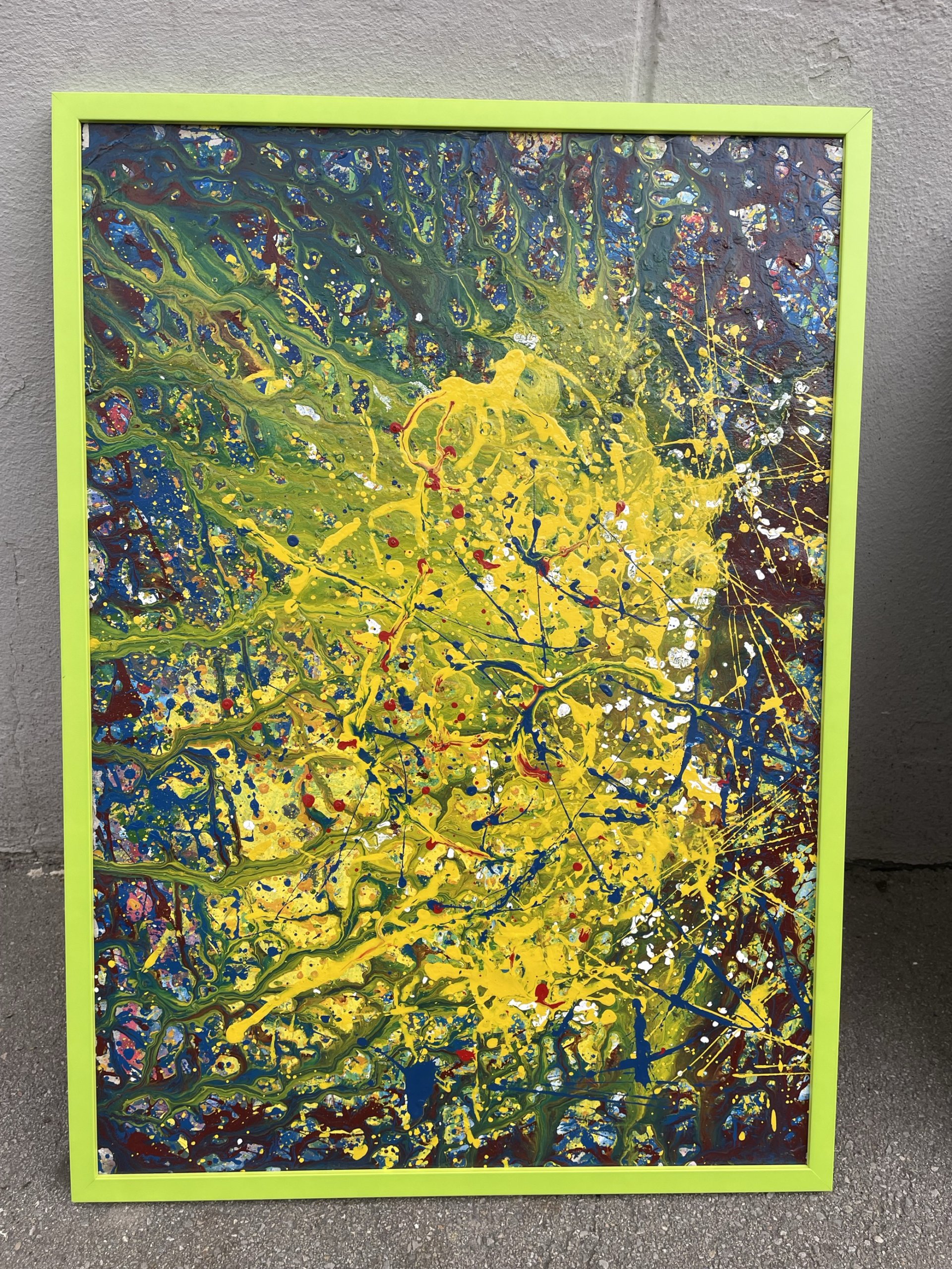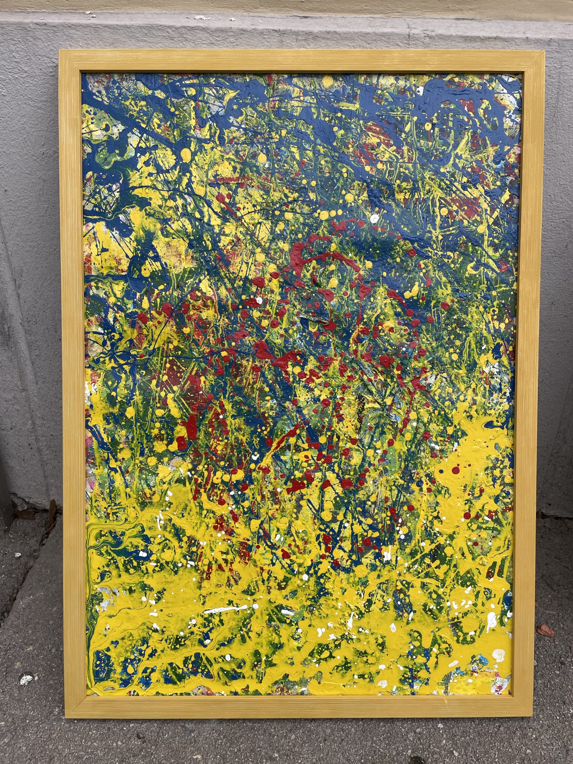 Med ustvarjanjem so učenci pri barvanju tehničnih izdelkov čopiče brisali ob zaščitne kartone, položene na delovne površine, nanje pa je kapljala tudi odvečna barva. Na teh kartonih so spontano nastajale barvne sledi, nepričakovane kompozicije in nehotene likovne strukture.